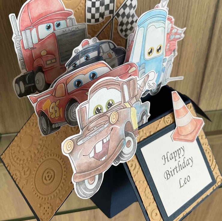 Beautiful Cars themed Pop Up Birthday Card.
