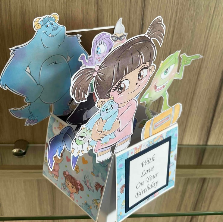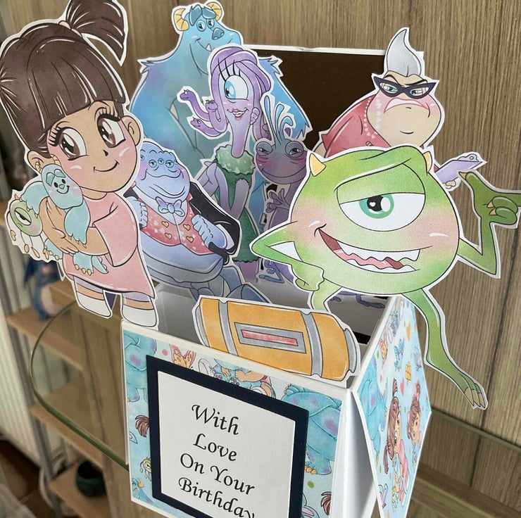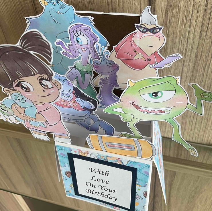 Beautiful Monsters Inc themed Pop Up Birthday Card.
