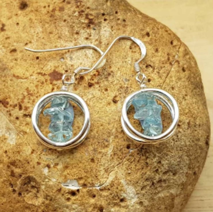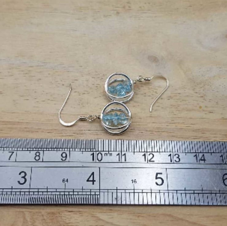 This is a women's small minimalist sterling silver blue topaz circle earrings with silver 3D circle frames. Perfect for a August birthstone gift. Stones will vary from the photos.