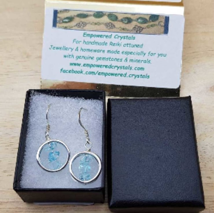 Blue Topaz earrings. November birthstone pendant. Sterling silver circle