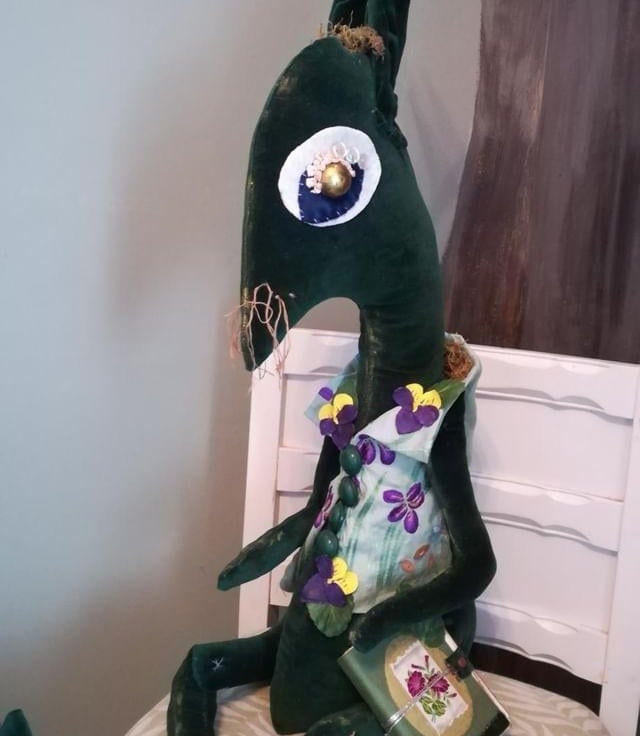 A one of a kind unique textile art sculpture, heirloom art keepsake sculpture.