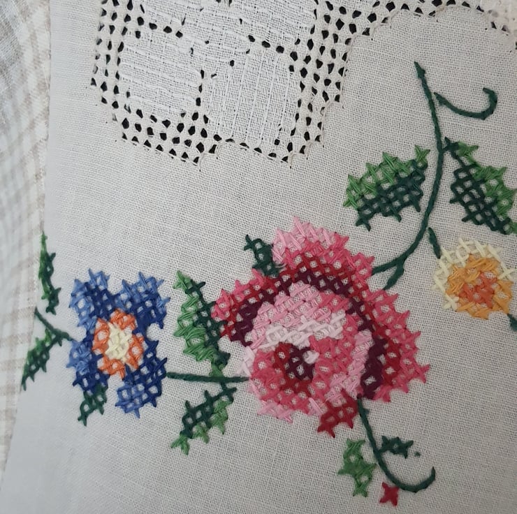 If you have a treasured piece of embroidery sitting in a drawer, why not have it made into something beautiful that you can use and love every day? Just send me a picture with measurements, and I'll give you ideas about what it could be made into!