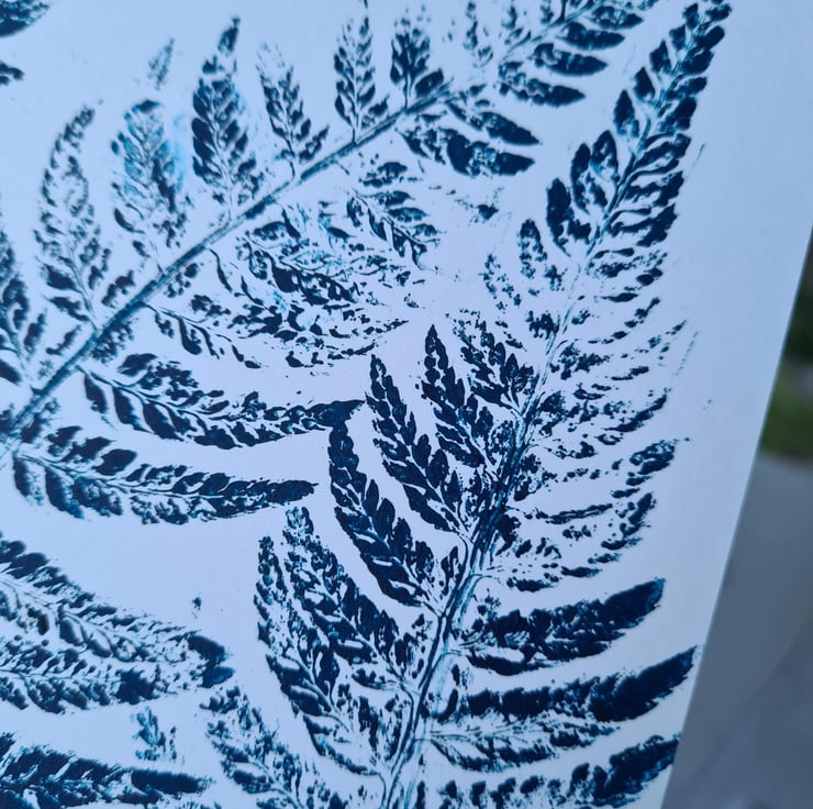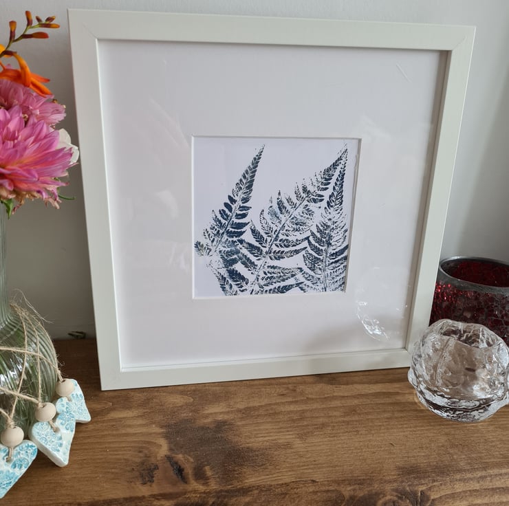 This handprinted fern card is printed from a fern in our garden, using quality printing ink. It could be used for lots of different occasions, including birthday, thinking of you, thank you. It would also look lovely framed as in photos (frame not included), and would look great as part of a gallery wall or on a picture shelf. The frame shown is Sannahed 25x25cm frame from Ikea, which has plastic instead of glass so is safe for use in a child's bedroom.