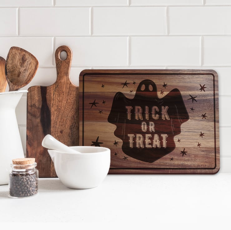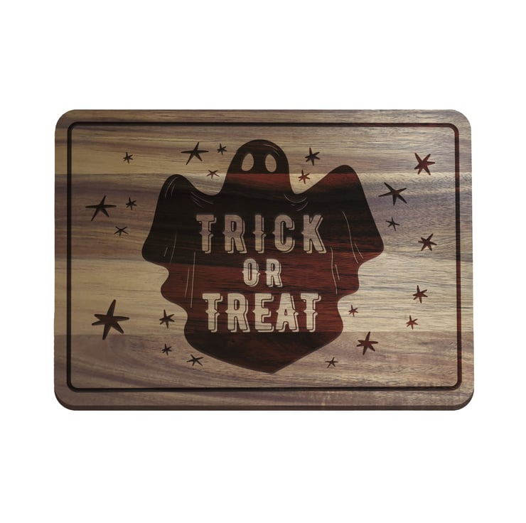 Make your kitchen the centre of Halloween fun with our "Trick or Treat" Acacia wood chopping board. It's a stylish and practical addition that will bring festive joy to your cooking space. Order now to get ready for the spookiest time of the year!