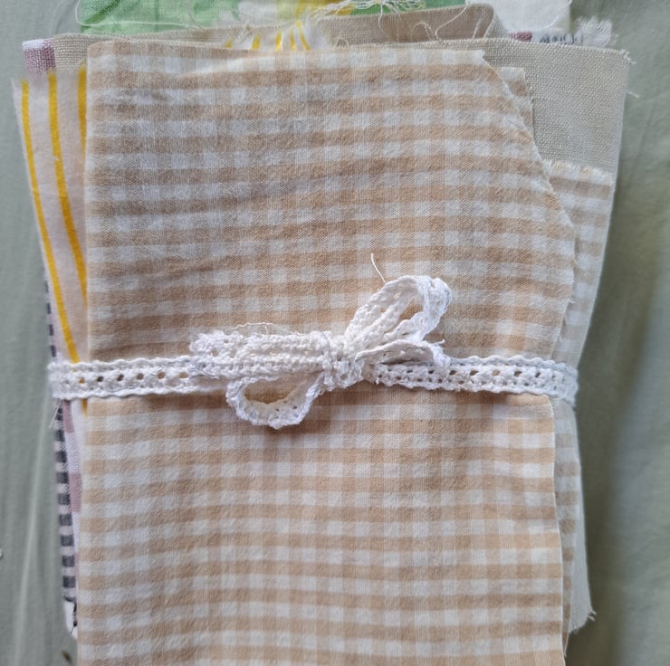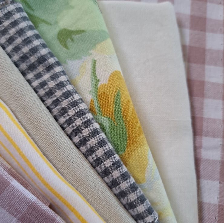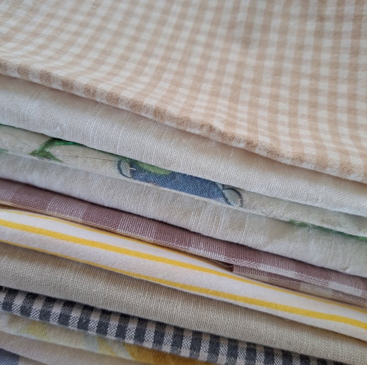 I so love fabrics that look like they've been used and washed for years. You can't get that texture from new fabric. These bundles contain approximately seven decent-sized pieces of cotton or linen fabric, each bundle a variation of what you see in the pictures. They were once fine linen pillow cases, checked pyjama tops or beloved old shirts, and are now waiting to have a second life in a cushion, quilt or piece of art. They will add a sun-washed, French farmhouse feel to your next textile project.