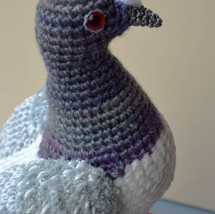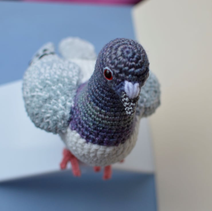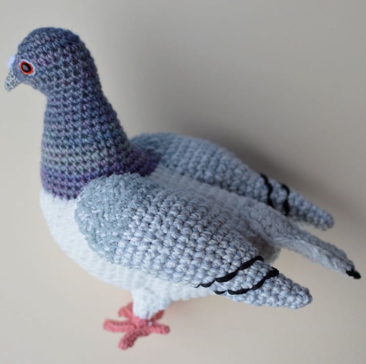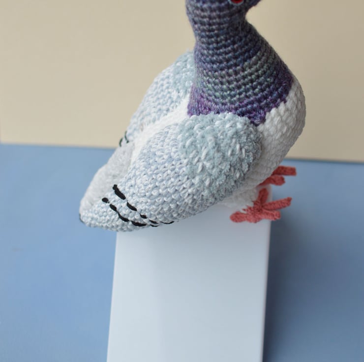 Lovely crochet pigeon hand-made by myself in a non smoking household. It measures about 8 inches tall x 8 inches long. This is made from various yarn types including acrylic, chenille and cotton. It is filled with 100% polyester filling and fitted with safety eyes. Not suitable for a child under 3 years old, as although it has safety eyes they are not recommended for this age group.