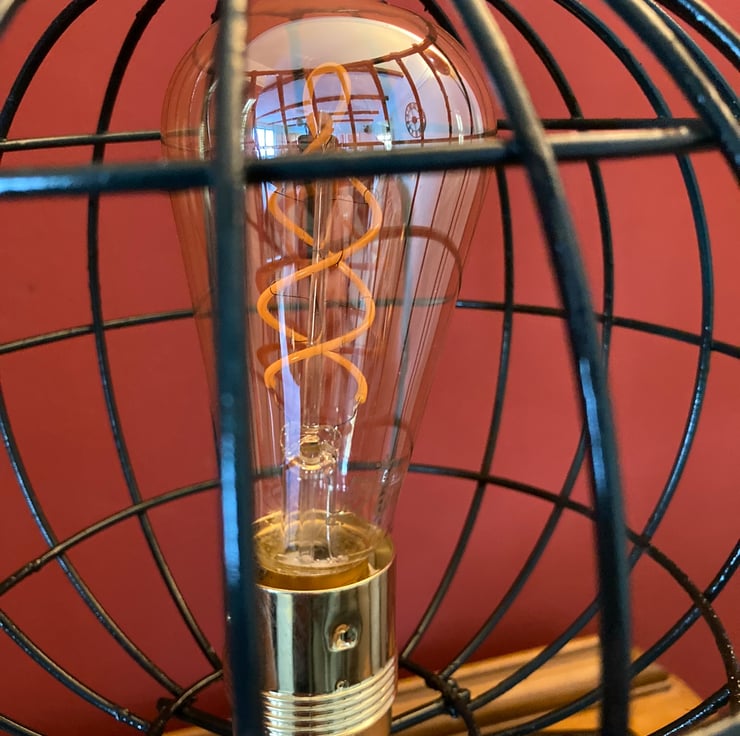 The bulb fitted in the photos is a 4W LED curly filament ST64 type with an ES (E27) fitting and will be supplied with the blowlamp. 6 feet/1.8 metres of luxury black braided 3 core flex with a black inline switch and black plug complete this unique lamp.