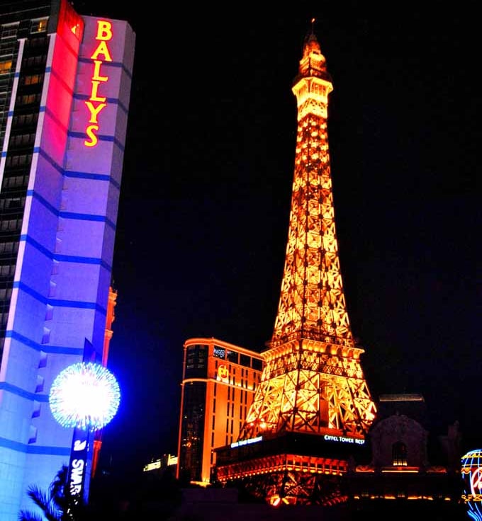Eiffel Tower and Ballys Hotel at night in Las Vegas Nevada United States of America photography by Andy Evans Photos a photographic print photography by Andy Evans Photos