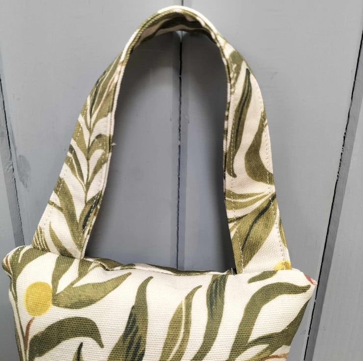 The stuffing that I use is recycled polyester filling and fabric is upcycled curtain sample.