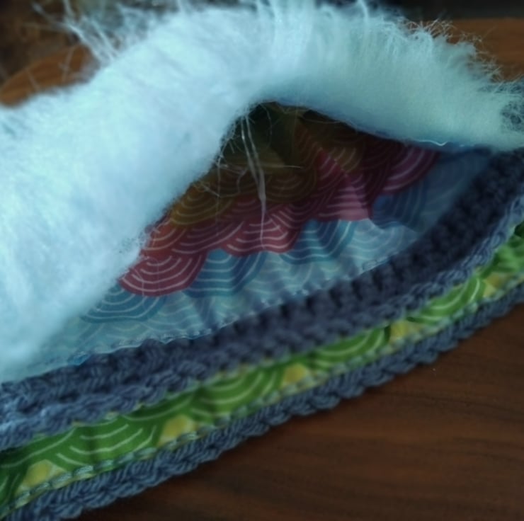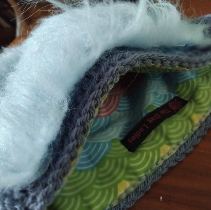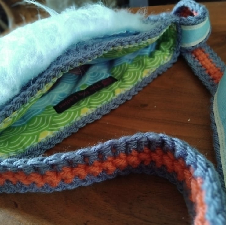 The strap is lined with blue cotton ribbon for strength and to prevent stretching.