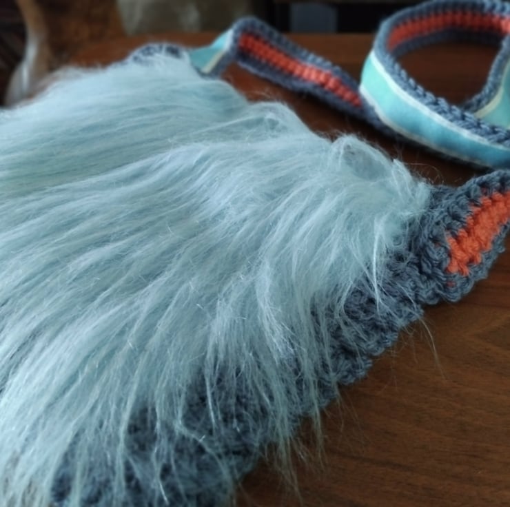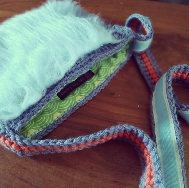 The bag has a gorgeous fluffy fur pocket at the front and is fully lined with rainbow cotton.