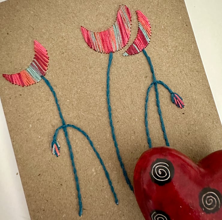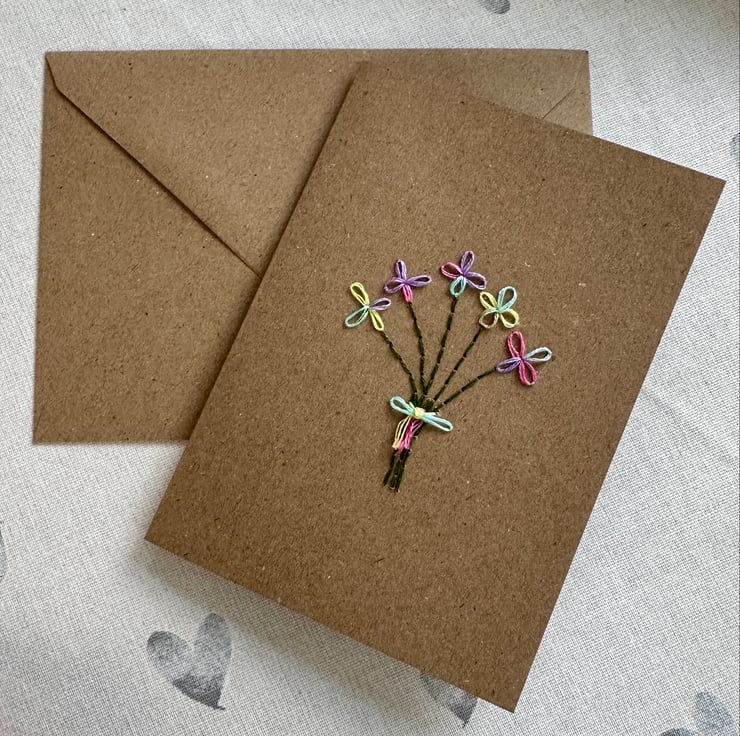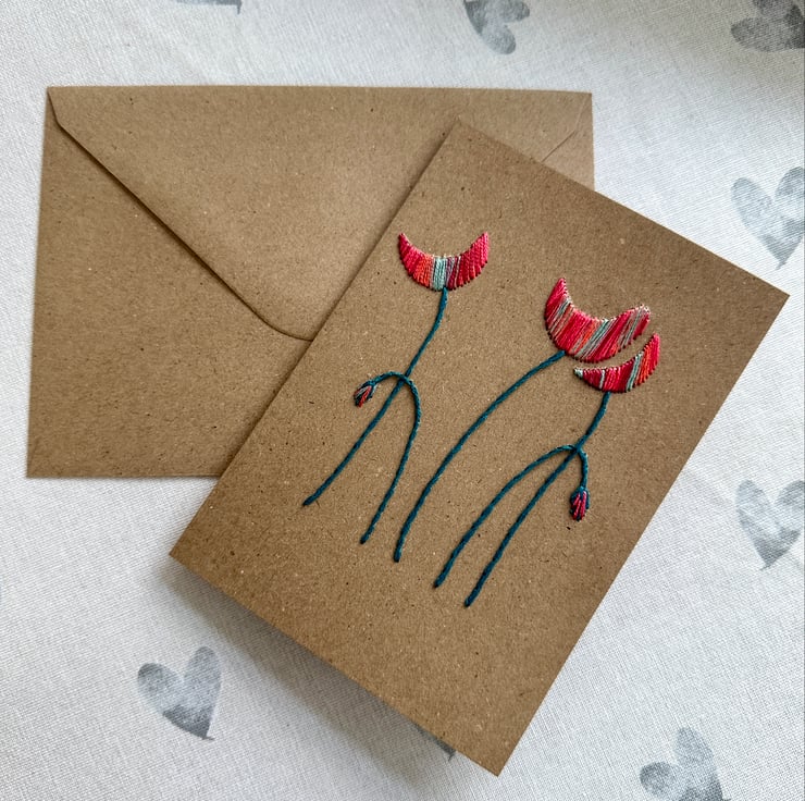 Each has been hand sewn using quality, colour fast DMC embroidery floss onto quality 300gsm, acid and lignin free card made from recycled paper.