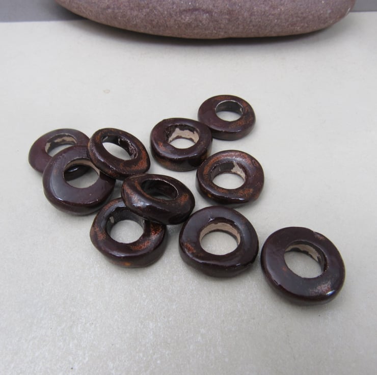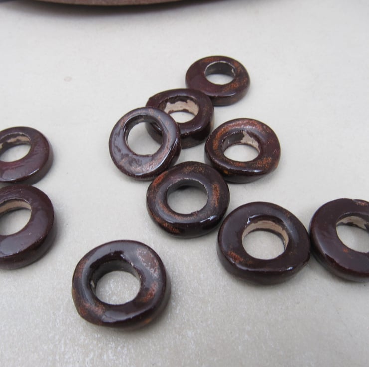 10 Medium Dark Copper Glazed Ceramic Donut Beads