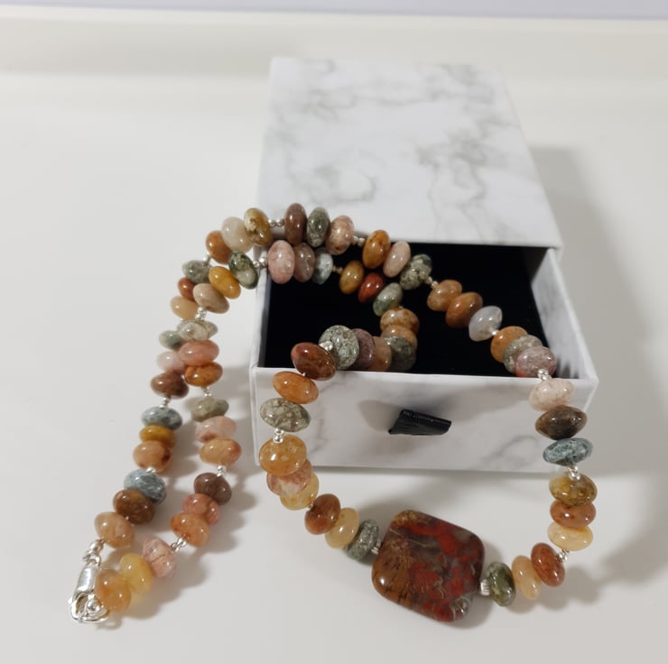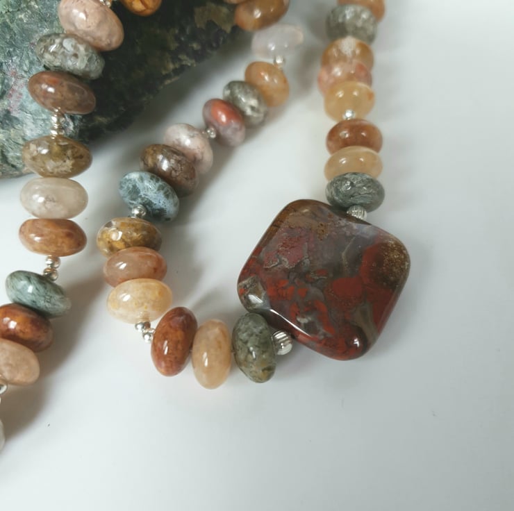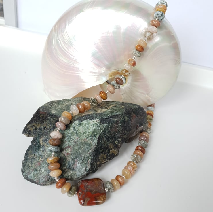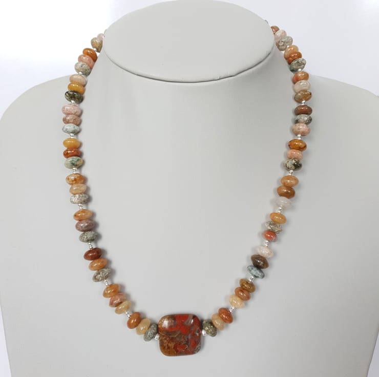 The Brecciated Red Jasper creates an interesting focal point in the centre of the necklace.