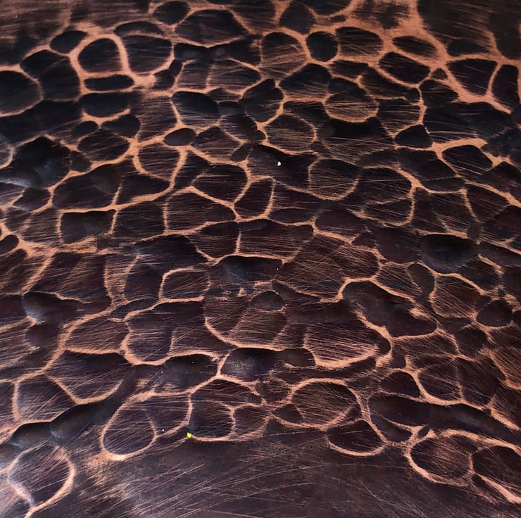 I love to play with different surface finishes in my work. After many years of chemically oxidising (blackening) the surface, I undertook a period of research and development into non-toxic patination. I still do some oxidised work but wanted to try different colours so decided to look at alternative ways using things you would find in your kitchen cupboards. Some of the things I have worked with so far include vinegar, soy sauce, hendersons relish, rice, sawdust and barley. I am now bwginnning to apply these finishes to some of my copper bowls.