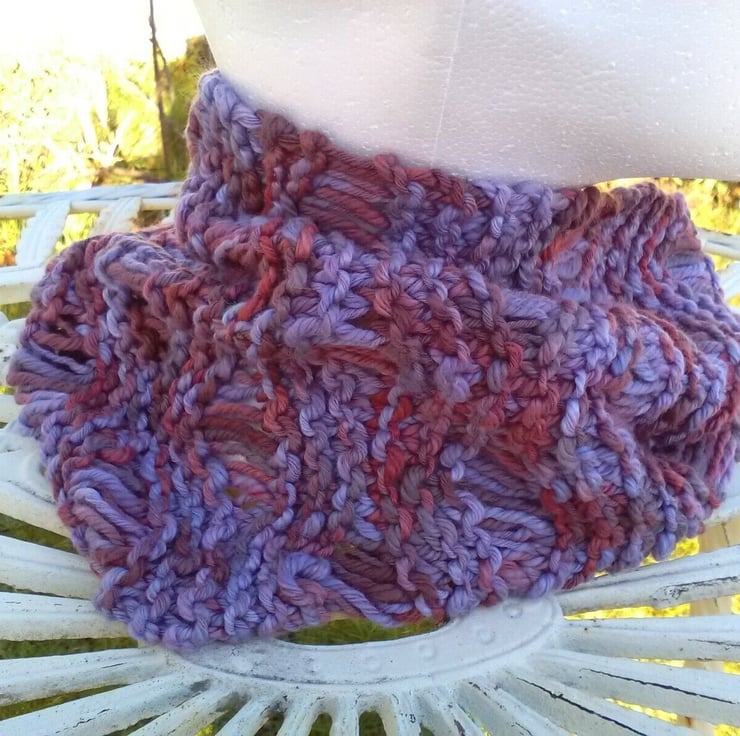 Handknit Lacy Mobius Cowl in hand dyed Pure Cotton