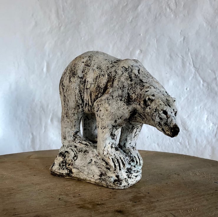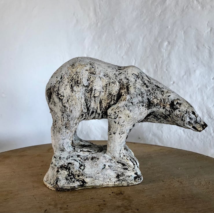 Polar bear sculpture in ceramic by Paul Szeiler.