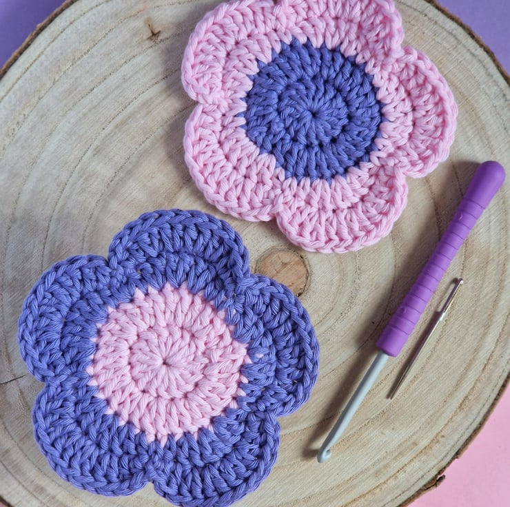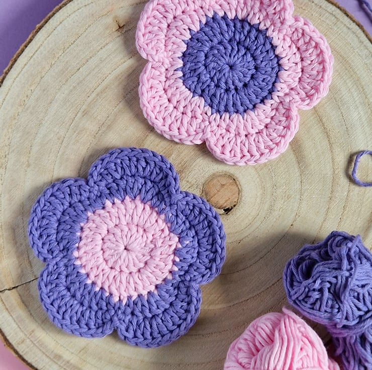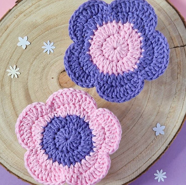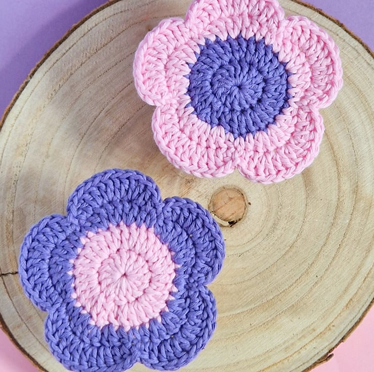Colourful flower coasters in a set of two! They make vibrant, fun home decor or a wonderful house warming or mothers day gift. Hand crocheted from supersoft cotton for absorbancy, they can be gently handwashed and dried flat. If you prefer different flower colours, please have a look through my shop!