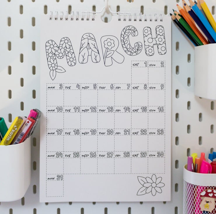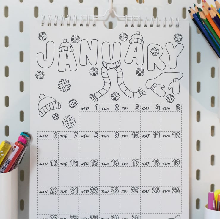 - Size: This Colouring Calendar comes as an A4 (210 x 297 mm or 8.3 x 11.7 inches) size. Each comes with a cover and 12 monthly pages, all ready to be adorned with your unique touch.