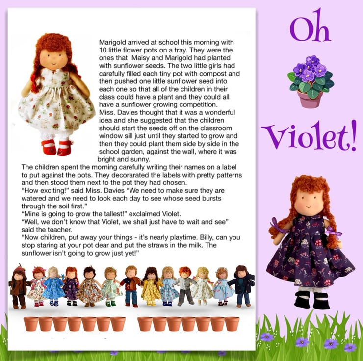There are other children in Maisy’s class at school - Violet, Billy with his pet rabbit, Amber, Tilly, Rosie and her kittens, Amelia, Ruby, Marigold, Bobby with Max the dog, and the twins Oliver and Olivia, who have a puppy called Oscar. The dolls are all 26cm tall and baby Daisy is 16cm. Maisy and Mo love nothing more than having adventures with their friends. You can read about their adventures on my Facebook and Instagram pages - Maisy Muffin Rag Dolls and on my Mulberry Green Pinterest boards.