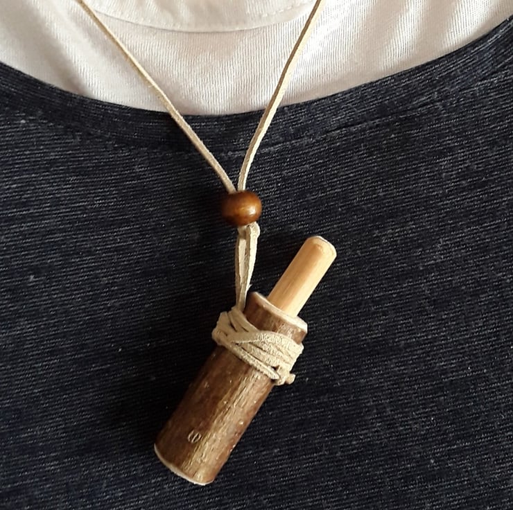 Bird caller ,make realistic bird sounds with this amazing bird caller, it works by friction and a little magic, made from Hazel you can wear around your neck or clip it to your belt or just keep it in your pocket or bag a wonderful gift for bird watchers, handmade in Nottingham , I provide enough cord to tie to the length you require
