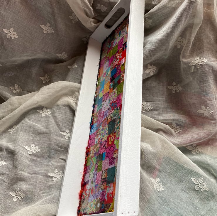 Around the edging of the inner tray base is a line of sari silk yarn.