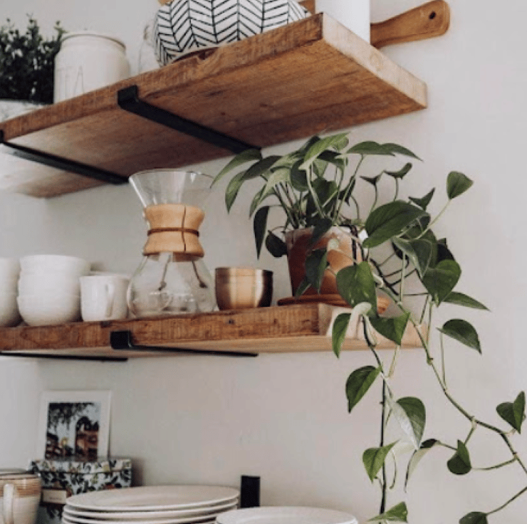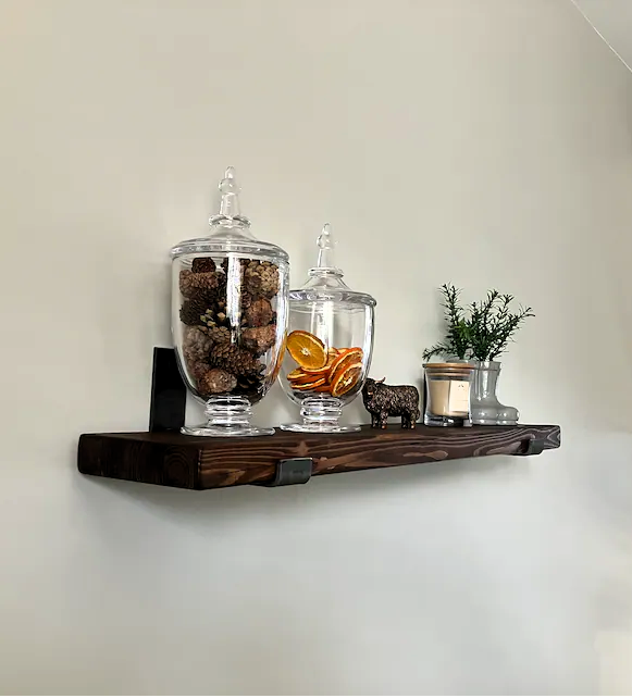 Shelves are made from reclaimed scaffold boards which have been sanded and are available in different finishes and sizes. Each piece of timber is hand-cut, sanded and treated for every order. In this process we do not remove any of the timber’s natural markings, giving each piece a unique style every time.