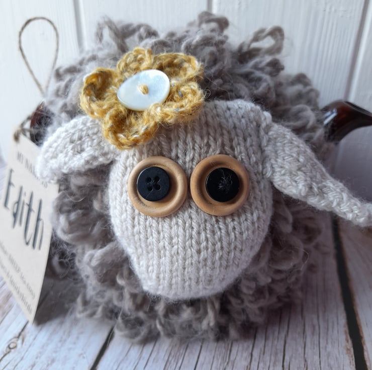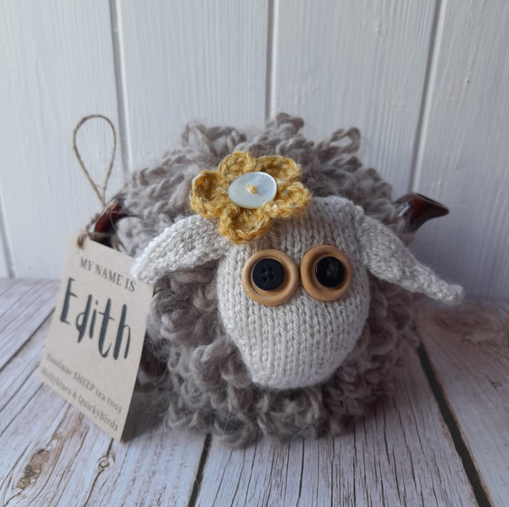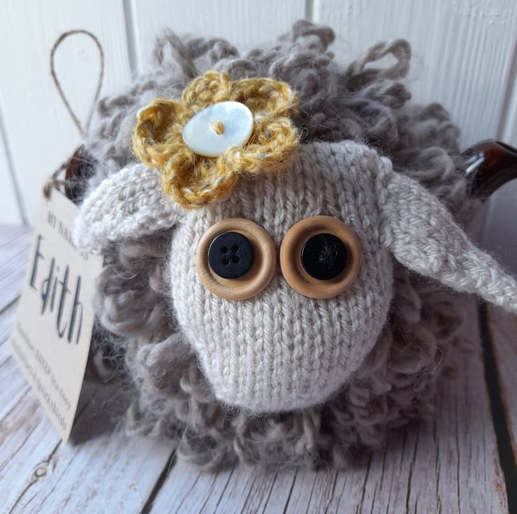 This is 'Edith' she is a quirky little sheep tea cosy.