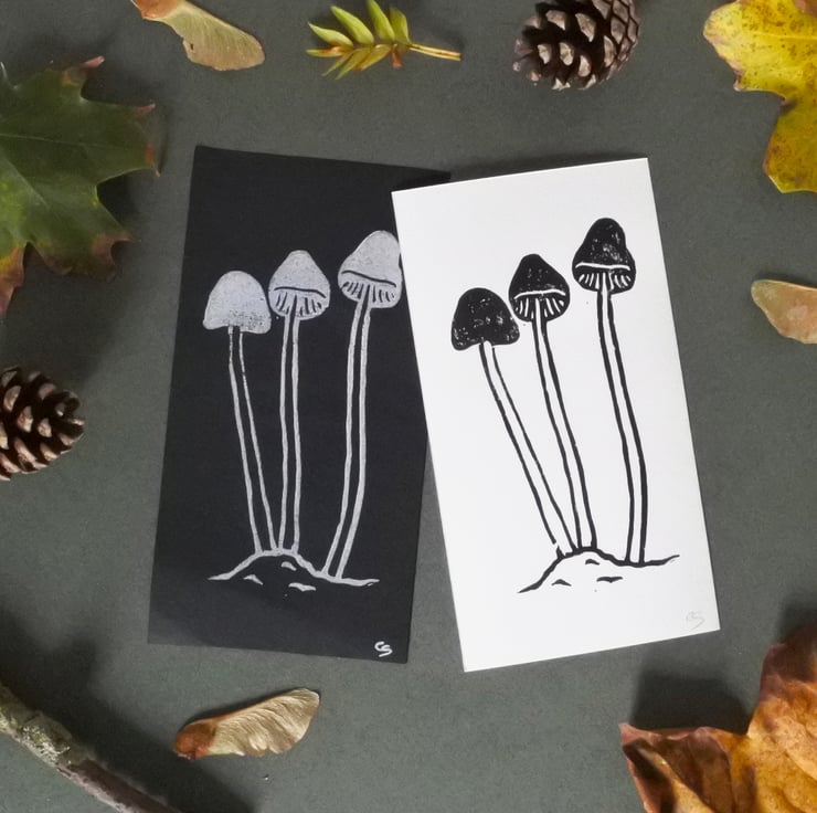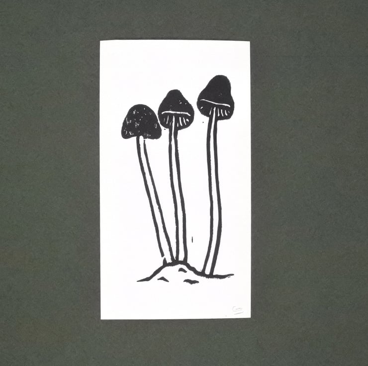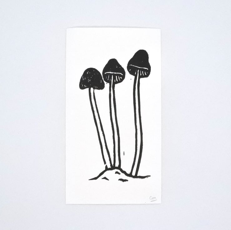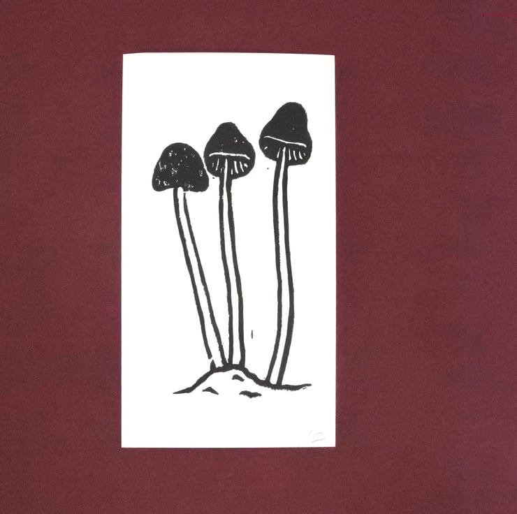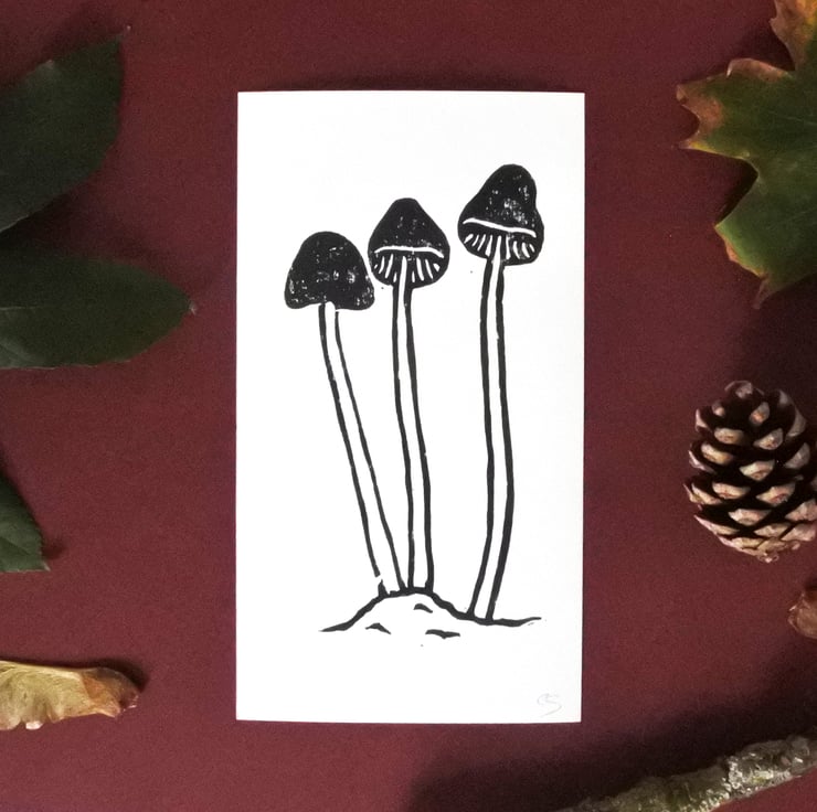 This lino print is hand burnished on 200g paper. The print size is 10.5x6cm and the paper size is 15x8cm. Each print hand signed in the front.