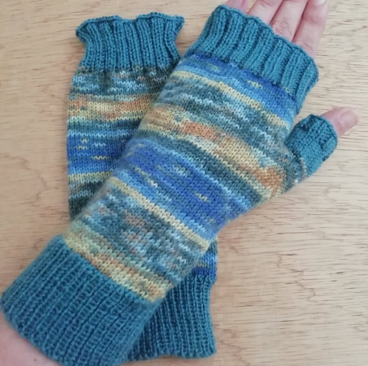 A cosy pair of fingerless gloves, great for cold hands whilst going out for a walk, or working from home.