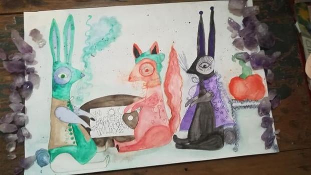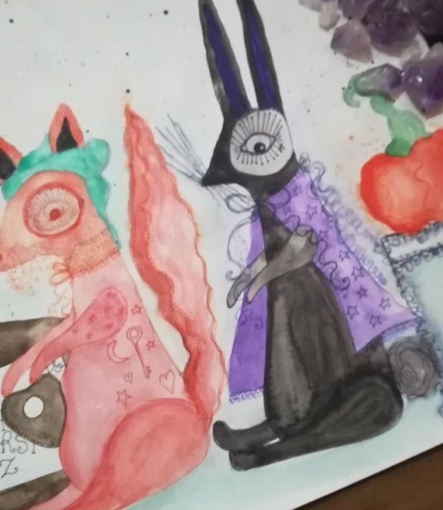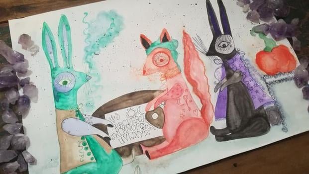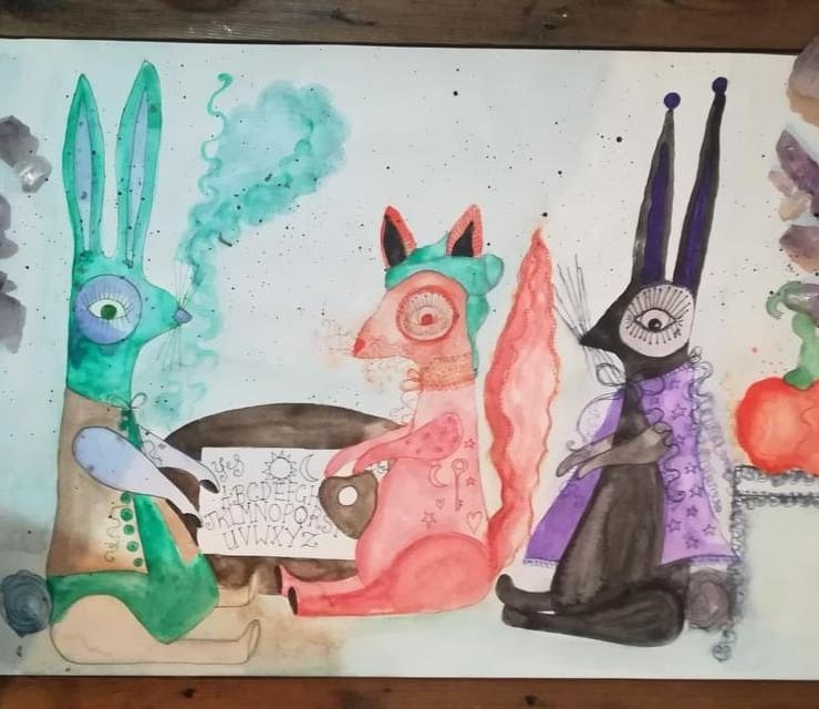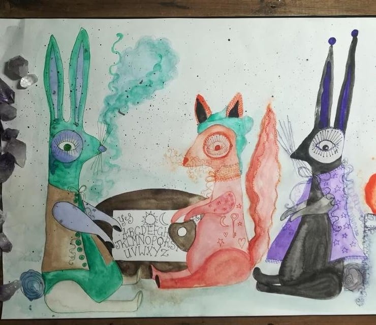 A foxy medium and her bunny clients, this piece is one of my designs for my creations,