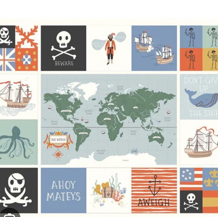 Riley Blake Hoist the Sail Fabric Panel together with 7 Co-ordinating fabrics. Each piece of fabric is 43ins wide and 1 yard long.