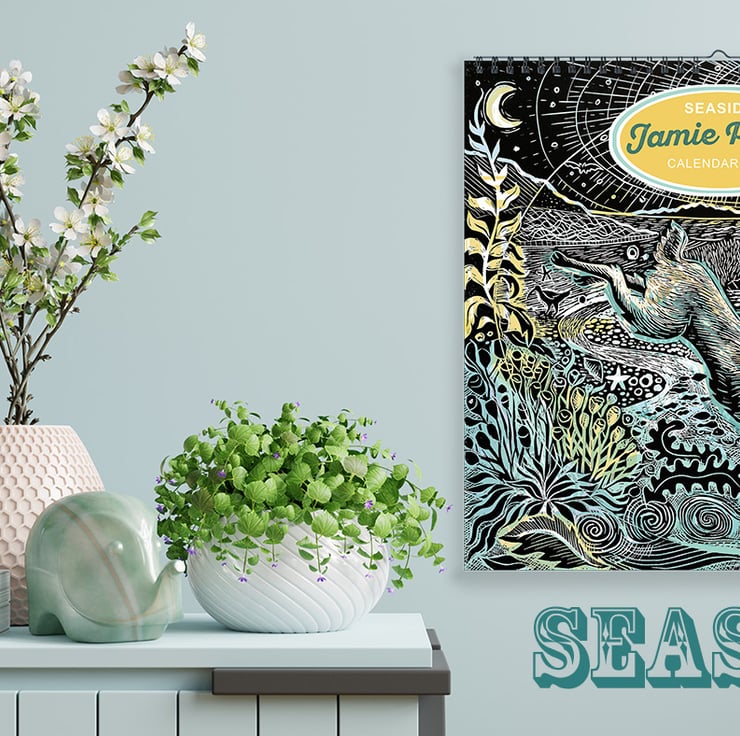 Dive into a year of coastal charm with my brand-new 2025 calendar, inspired by the mesmerizing shores of the British Isles! This unique collection features stunning artworks, each depicting a different seaside scene, crafted with love and a touch of literary elegance. What makes these pieces truly special? They're lino-print designs incorporating the words of famous poets, bringing together visual art and poetry in a harmonious blend.