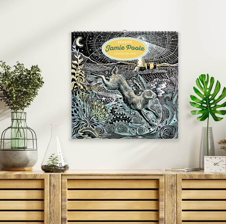 Enjoy a year of coastal charm with my brand-new 2025 calendar, inspired by the wonderful shores of the British Isles! This new collection features stunning artworks, each depicting a different seaside scene, crafted with care and a touch of literary elegance. What makes these pieces truly original? They're lino-print designs incorporating the words of well-known poets, bringing together visual art and poetry in a harmonious blend.