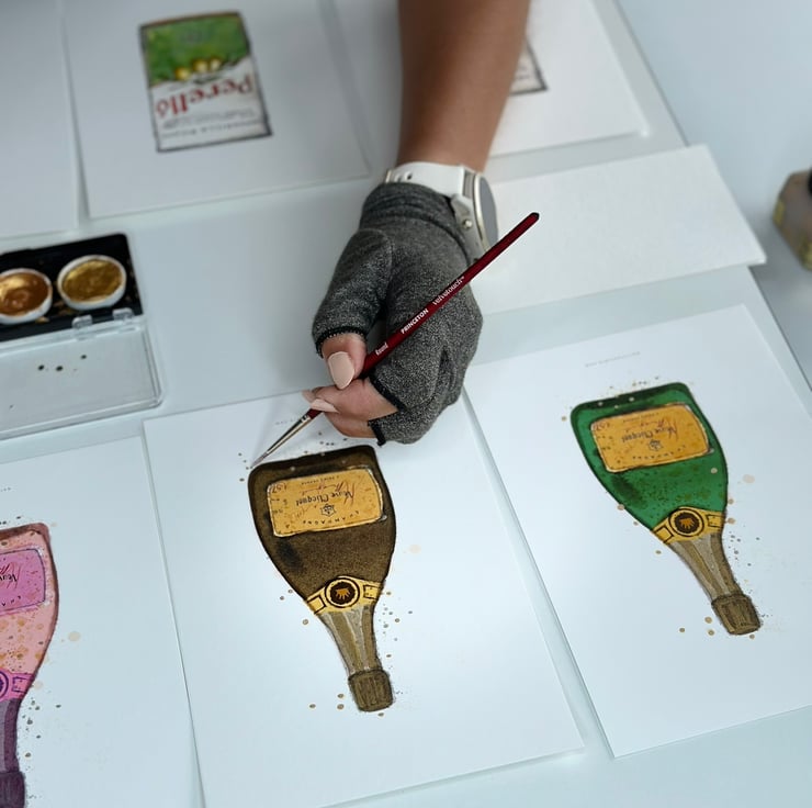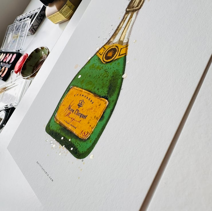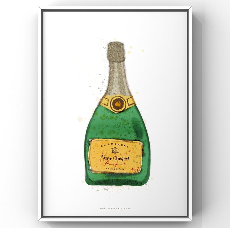 Hand Finished Watercolour Art Print - Veuve Champagne Green