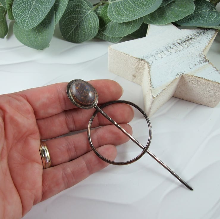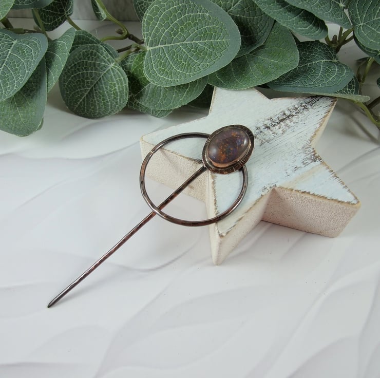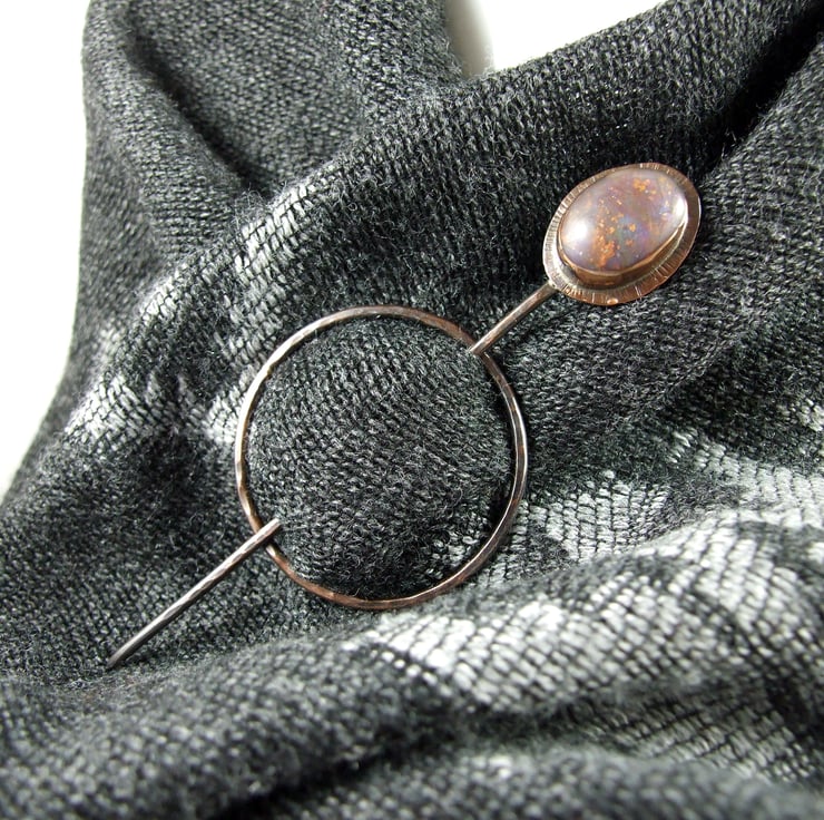 Copper shawl pin brooch with my own handmade marbled clay and resin cabachon for Open Weave or Knit Shawl, Scarf, Wrap or Cardigan.
