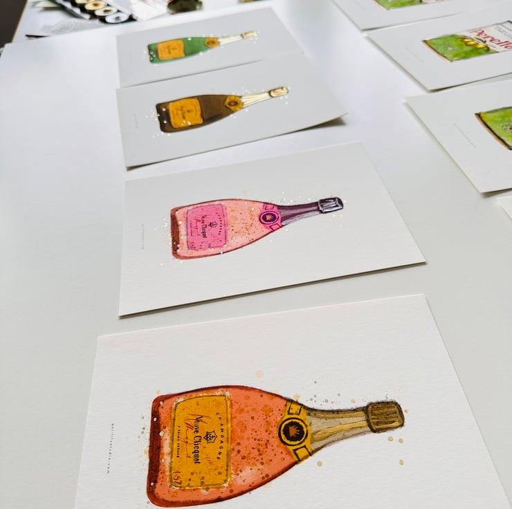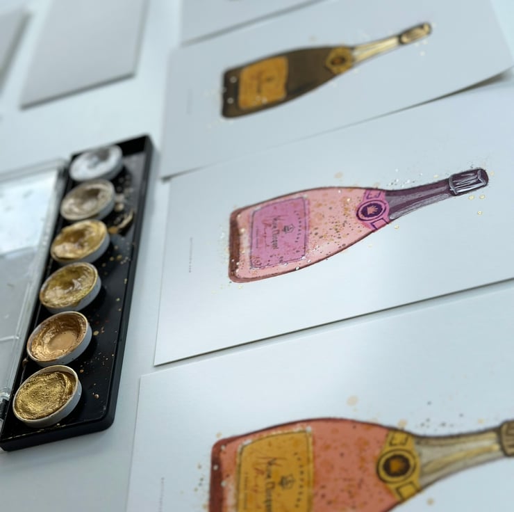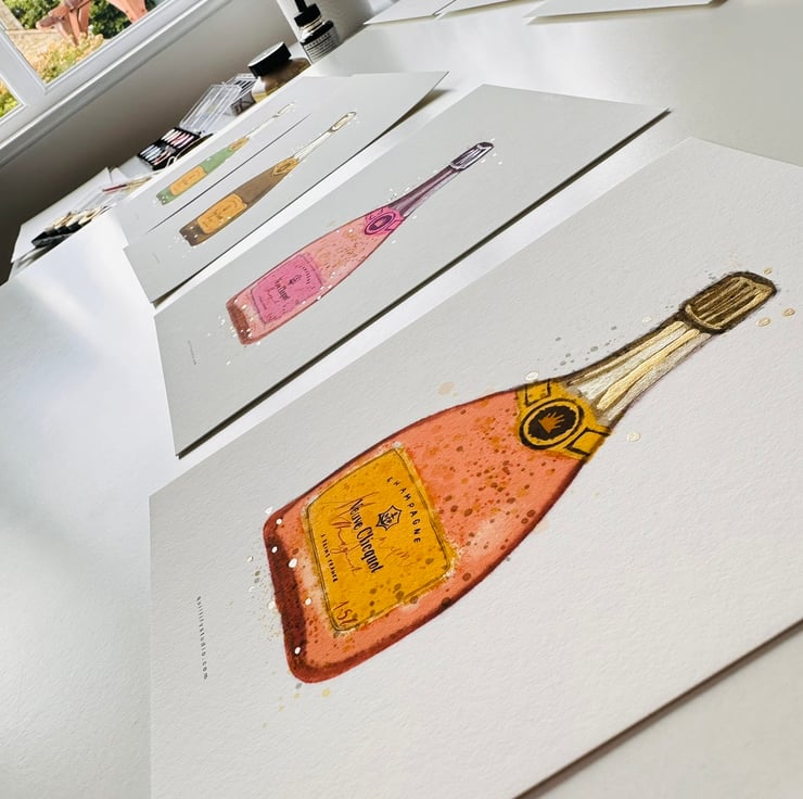 Hand Finished Watercolour Art Print - Veuve Champagne Blush
