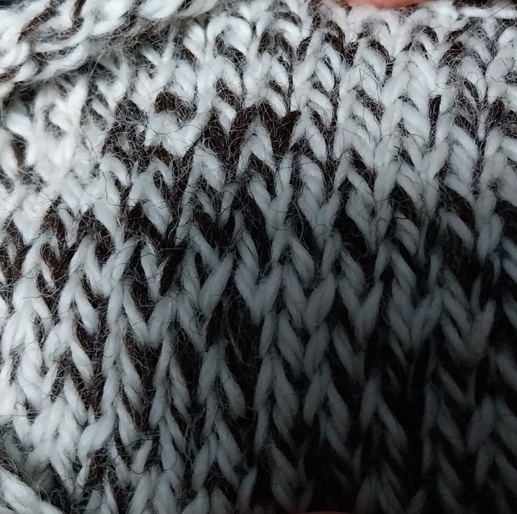 It is a twist of Wool and Welsh Black Wool and is the same base as Colinette 's HULLABALOO.