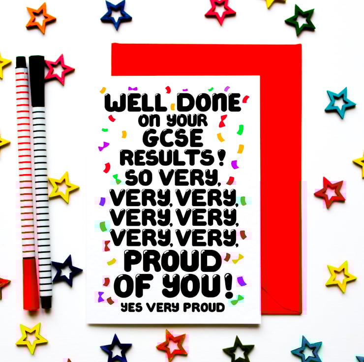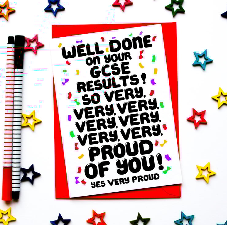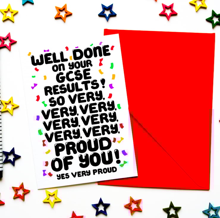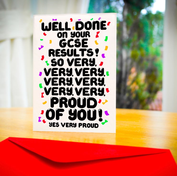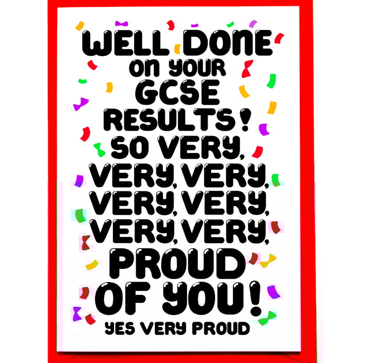 Greeting on front: WELL DONE ON YOUR GCSE RESULTS ! SO VERY, VERY, VERY, VERY, VERY, VERY, VERY PROUD OF YOU ! YES VERY PROUD