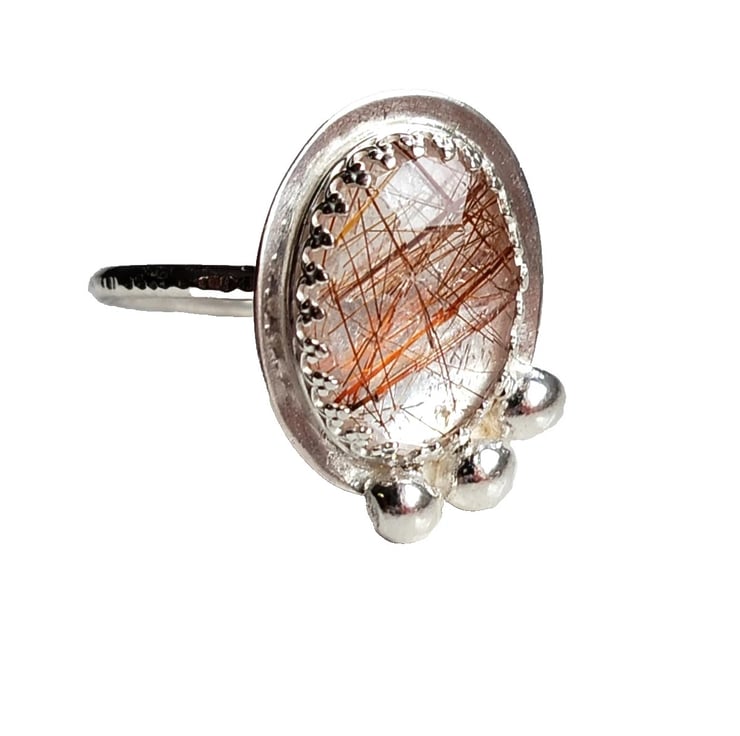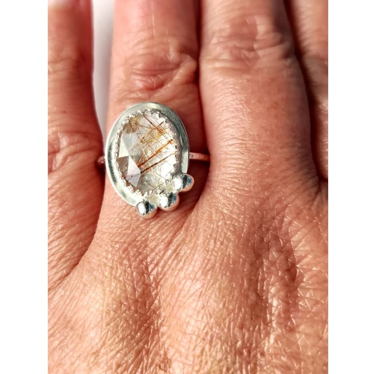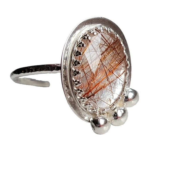 Copper Rutilated Quartz Ring Adjustable Sterling Silver Jewellery Gift Rose Cut