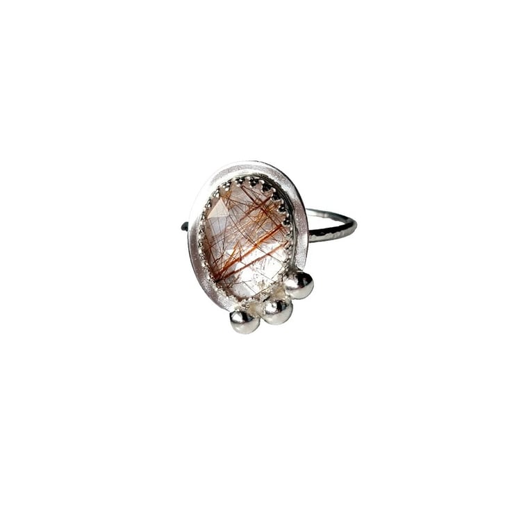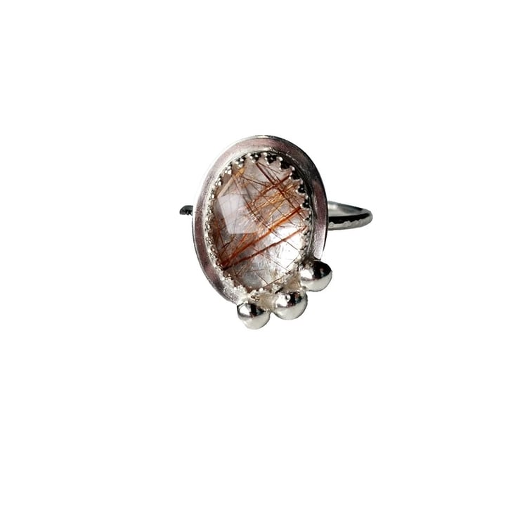 Rose Cut Copper Rutilated Quartz Gemstone Handcrafted Ring in .925 Sterling Silver