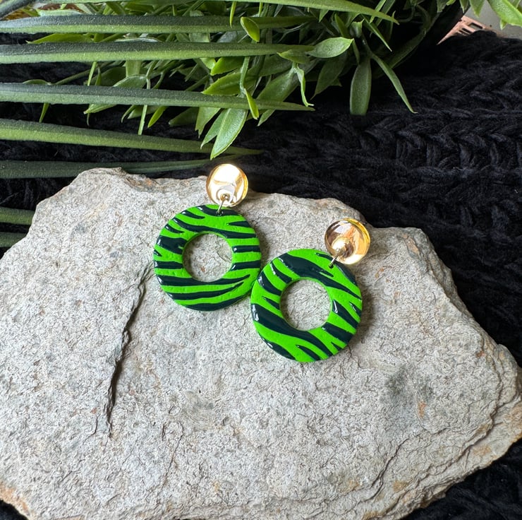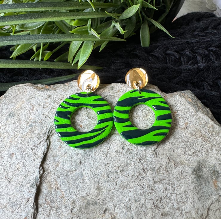 In a circle hoop hollow middle Shape with a beautiful complimentary small circle of Gold mirrored acrylic