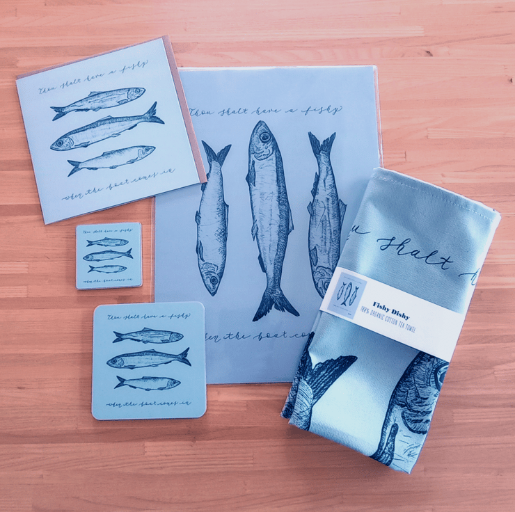 Part of my 'Fishy Dishy' collection, which includes an A4 art print, a 100% organic cotton tea towel, a square note card and a fridge magnet in addition to these wooden coasters.