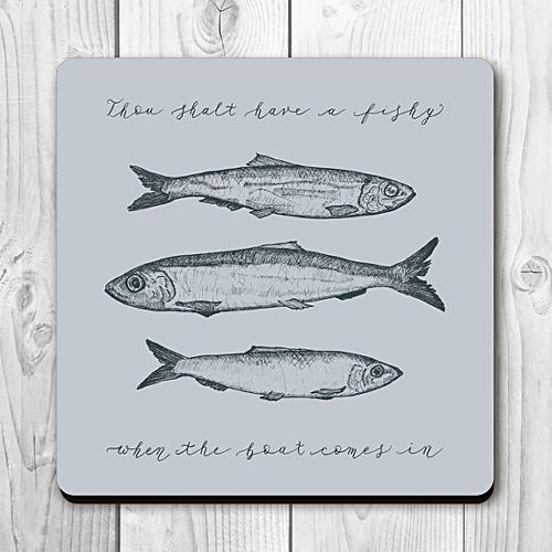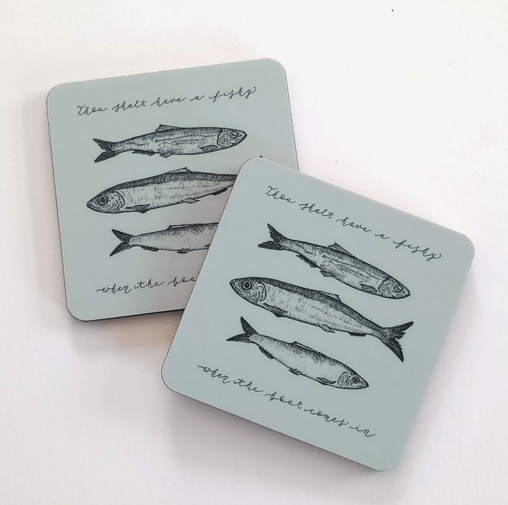 Inspired by the traditional North East Folk Song 'Dance to your Daddy', these herring illustrations were hand-drawn in pen-and-ink with two lines from the song hand-written in a modern calligraphy style, before being printed onto these lovely quality wooden coasters.