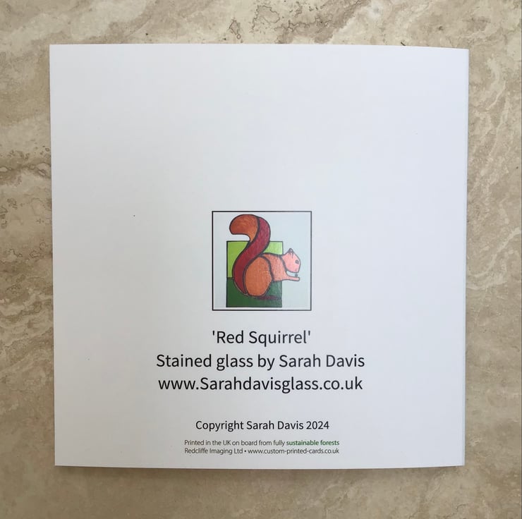 A high quality printed greetings card with a stylish image of my red squirrel stained glass hanging. Ideal for birthdays and other occasions.