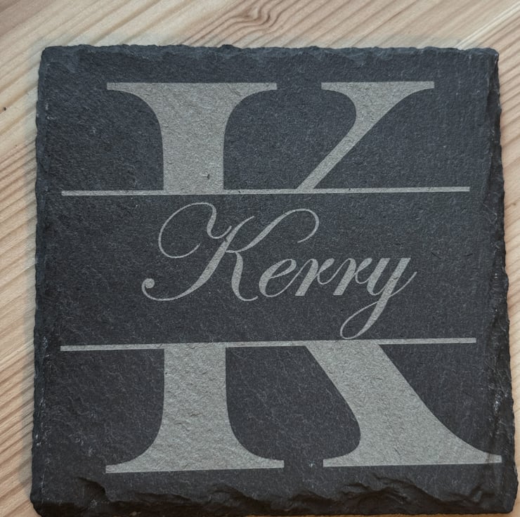 Add your name to a beautiful natural slate coaster. The first letter of the name shall be used for Background with the full name appearing in the centre.
