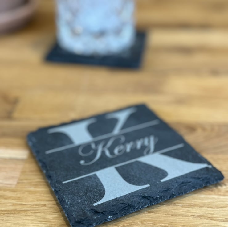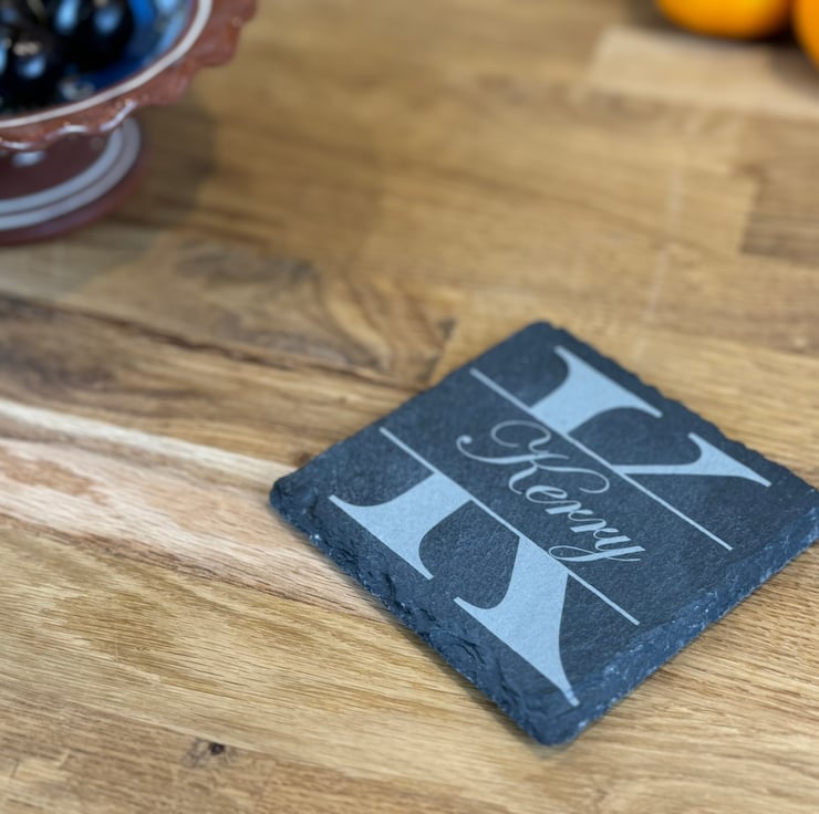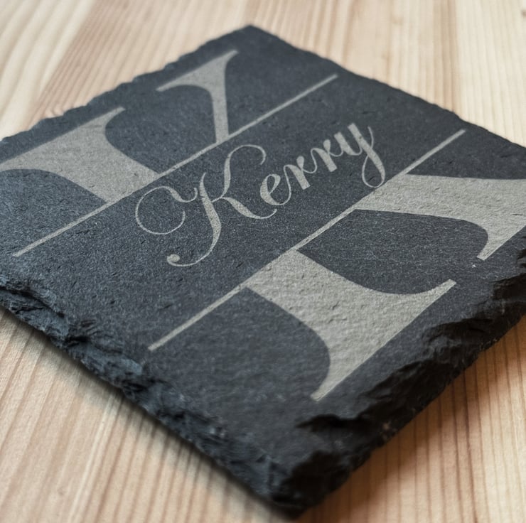 Add your name to a beautiful natural slate coaster. The first letter of the name shall be used for Background with the full name appearing in the centre.