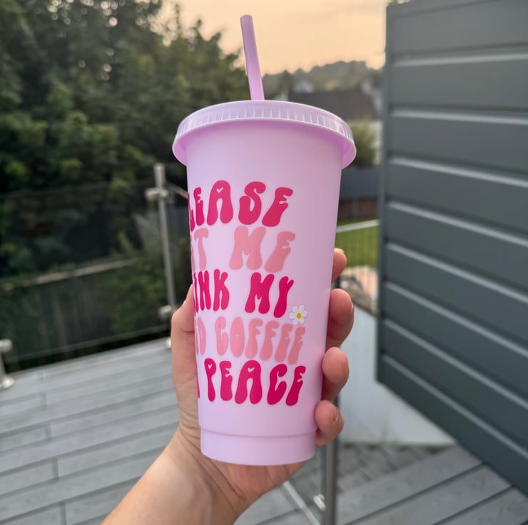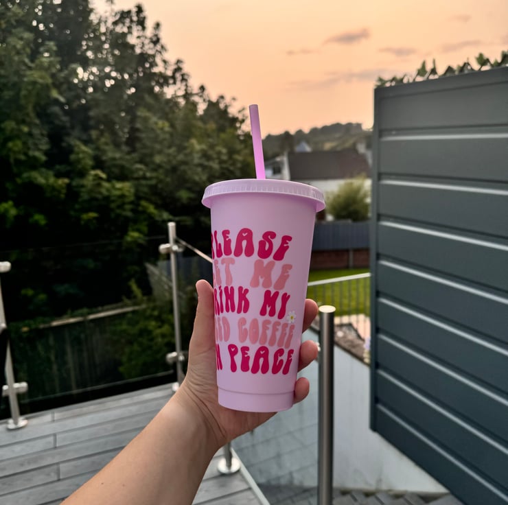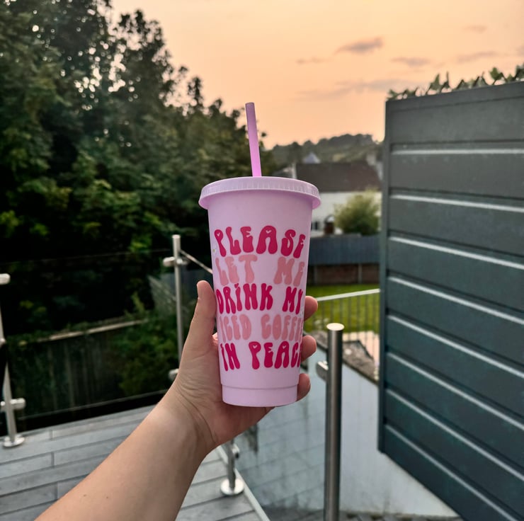 The cup speaks for itself, who wants to be disturbed while they drink their iced coffee? Not us! This cup was such a laugh to create because it felt really relatable. This product is completely customisable and a completely different quote can be put on it if you like. The colours are also able to be customised.