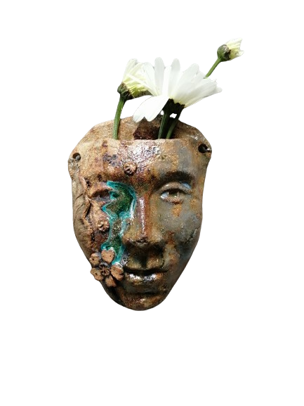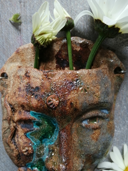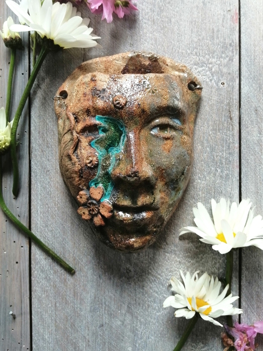 These ceramic, humankind/nature wall pots have been inspired from a recurring theme running throughout my work, conveying a sense of the often fragile balance between humankind, nature and an interest in Folklore and Mythology, often connected to the rythmn of the seasons and the time of the year.