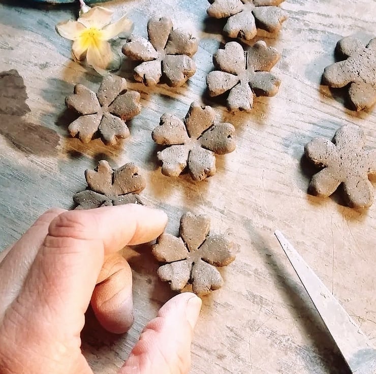 Leaving the natural edge of the clay, suggests the beauty of the repeated lines, shapes and textures to be found in nature.
